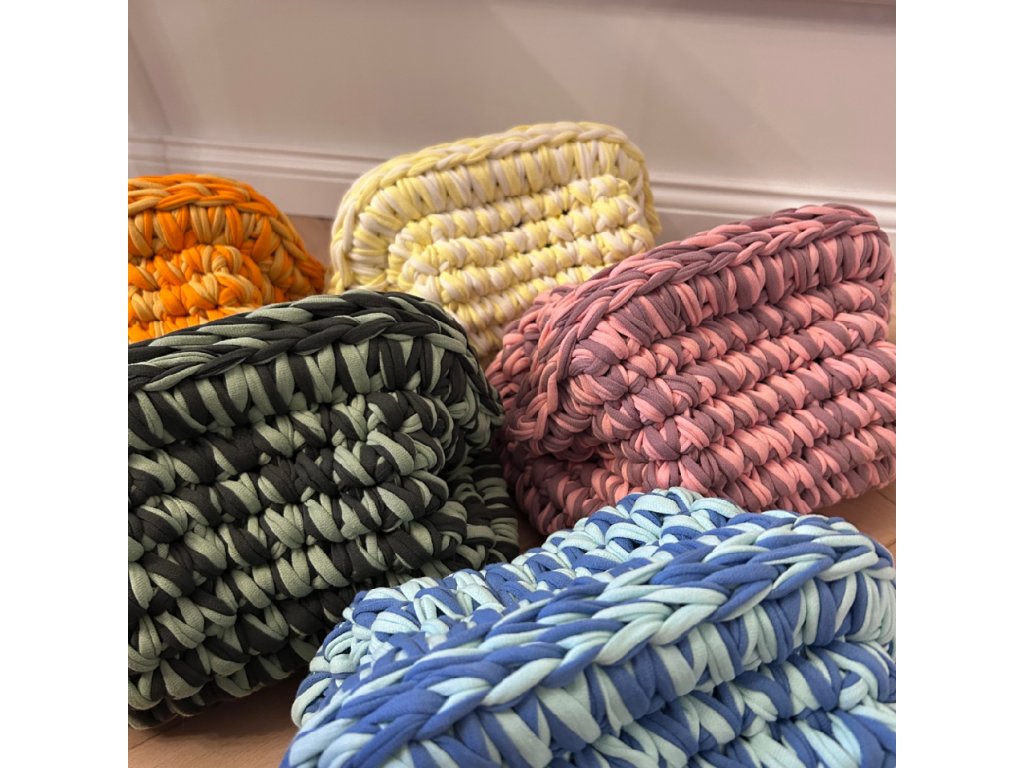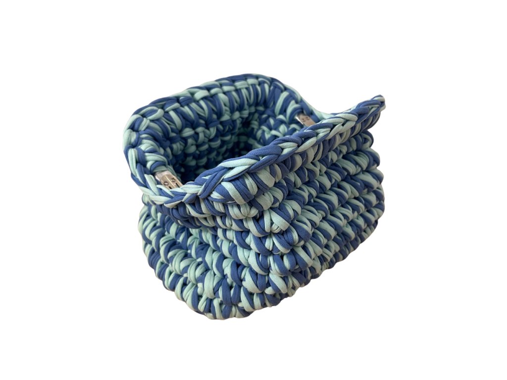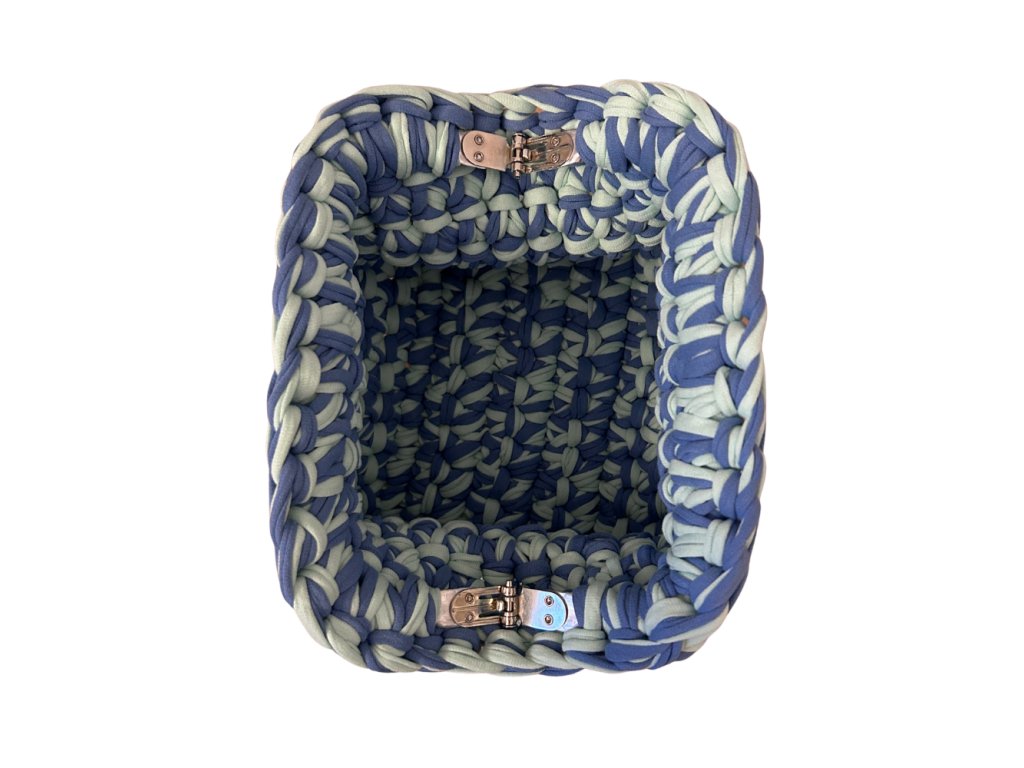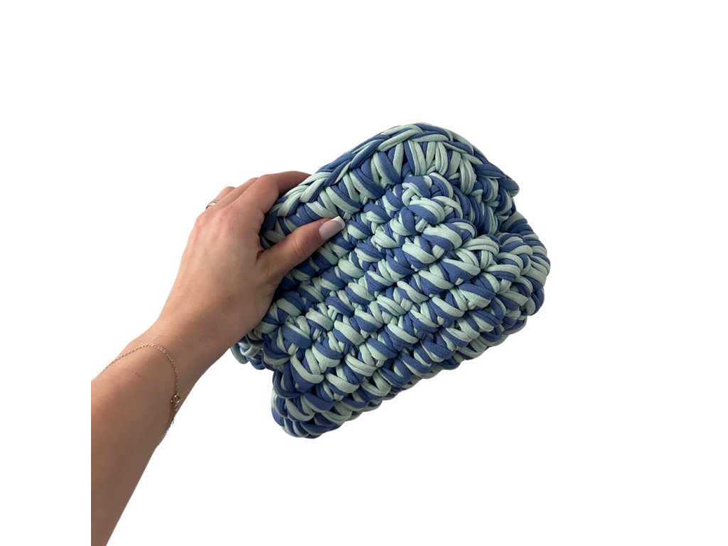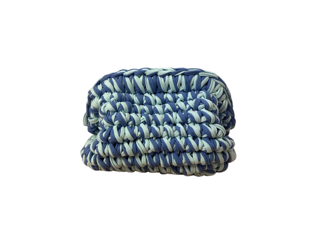 Táto jedinečná ručne háčkovaná kabelka je štýlovým doplnkom, ktorý spája remeselnú precíznosť s moderným dizajnom. Vyrobená je z kvalitnej bavlnenej tričkoviny, ktorá je príjemná na dotyk, pevná a zároveň si zachováva svoj tvar aj pri každodennom používaní.