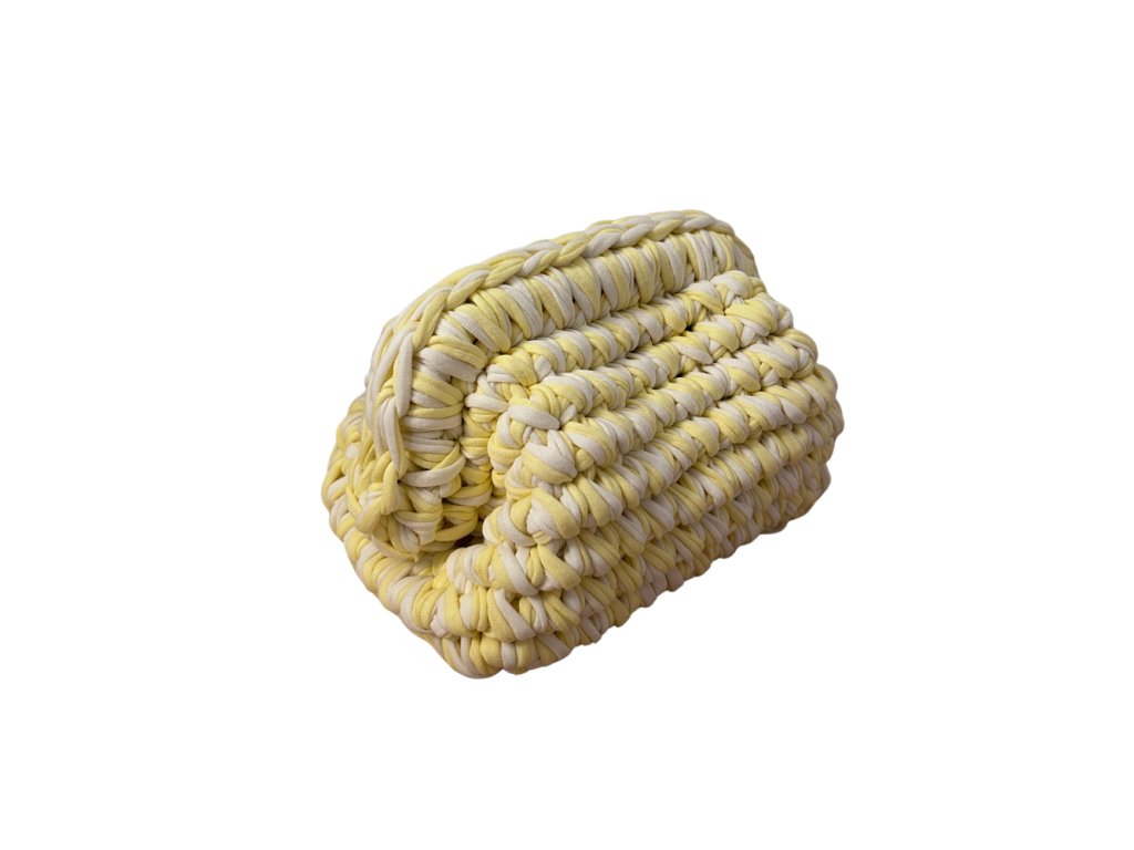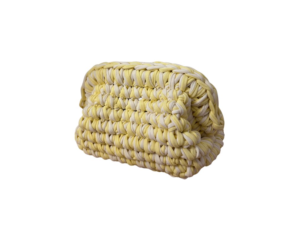 Táto jedinečná ručne háčkovaná kabelka je štýlovým doplnkom, ktorý spája remeselnú precíznosť s moderným dizajnom. Vyrobená je z kvalitnej bavlnenej tričkoviny, ktorá je príjemná na dotyk, pevná a zároveň si zachováva svoj tvar aj pri každodennom používaní.