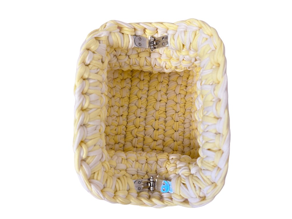 Každý kus je vytvorený ručne, vďaka čomu je každá kabelka originál. Hustý háčkovaný vzor dodáva kabelke charakter a zároveň zabezpečuje jej pevnosť. Konštrukciu dopĺňa pevný hliníkový rám, ktorý kabelke dodáva elegantný tvar a umožňuje jednoduché otváranie a zatváranie.