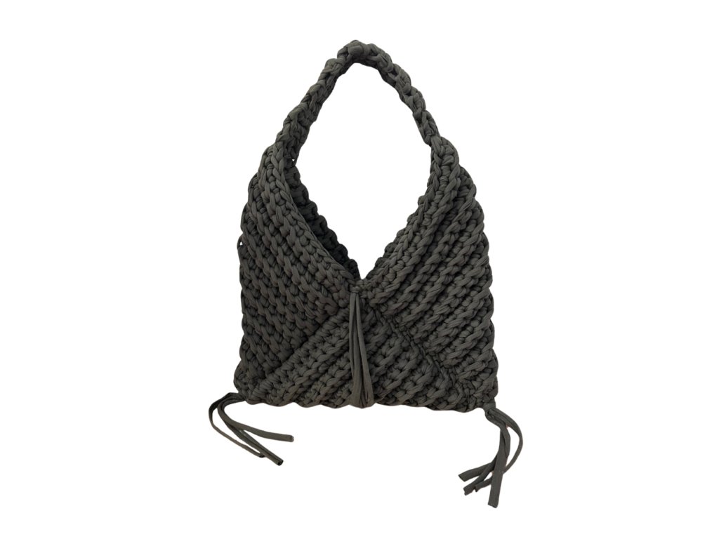 Každý kus je ručne vyrobený, vďaka čomu je každá kabelka jedinečná. Charakteristický háčkovaný vzor dodáva kabelke výraznú textúru a štýl. Dizajn dopĺňajú dekoratívne strapce, ktoré podčiarkujú jej ležérny a prirodzene elegantný vzhľad. Strapce majú rôznu dĺžku, približne 10 – 15 cm, čo vytvára jemný dynamický efekt pri nosení.