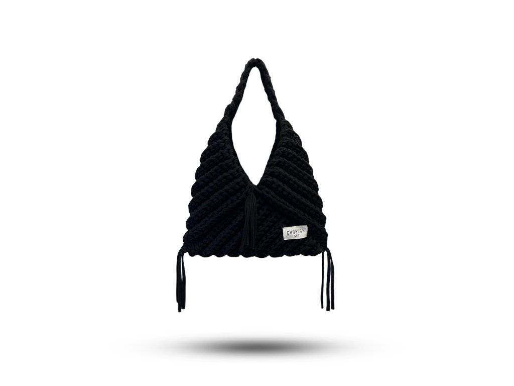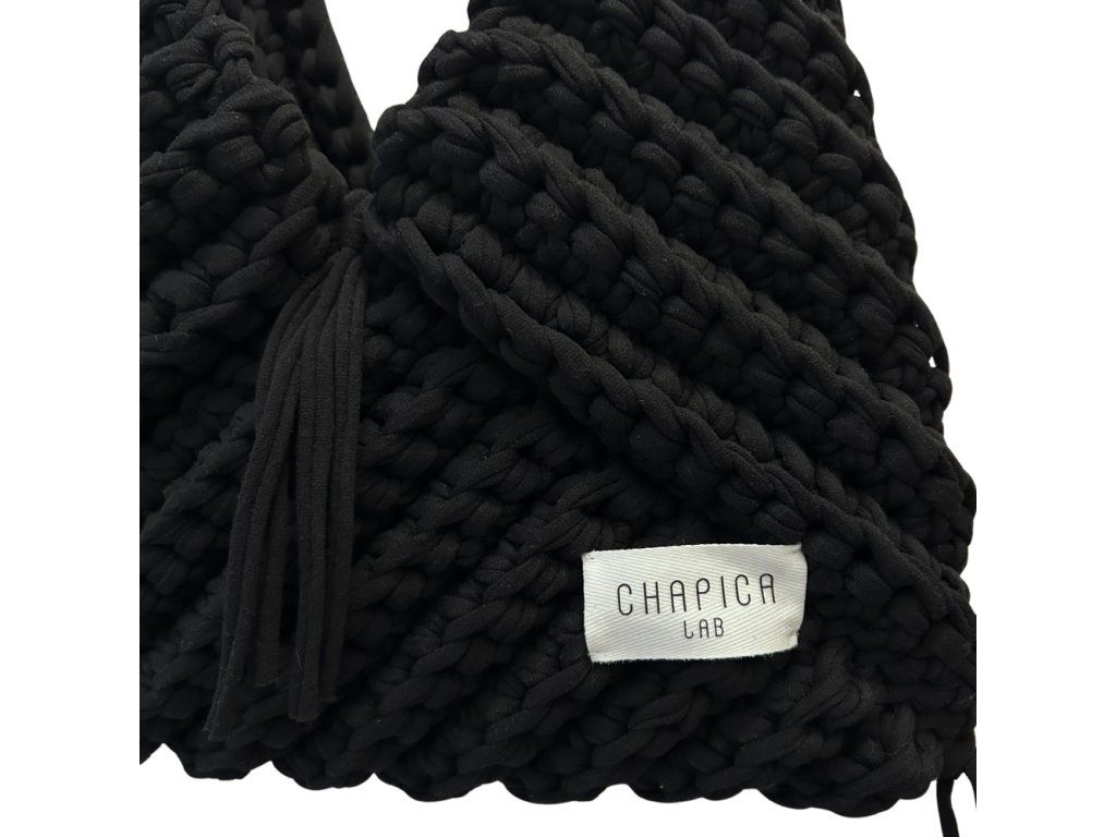 Každý kus je ručne vyrobený, vďaka čomu je každá kabelka jedinečná. Charakteristický háčkovaný vzor dodáva kabelke výraznú textúru a štýl. Dizajn dopĺňajú dekoratívne strapce, ktoré podčiarkujú jej ležérny a prirodzene elegantný vzhľad. Strapce majú rôznu dĺžku, približne 10 – 15 cm, čo vytvára jemný dynamický efekt pri nosení.