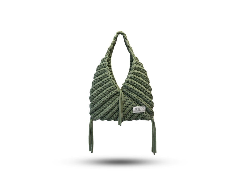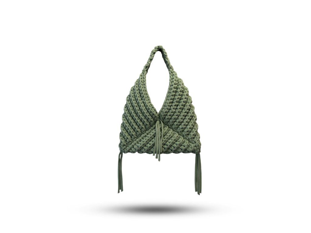 Každý kus je ručne vyrobený, vďaka čomu je každá kabelka jedinečná. Charakteristický háčkovaný vzor dodáva kabelke výraznú textúru a štýl. Dizajn dopĺňajú dekoratívne strapce, ktoré podčiarkujú jej ležérny a prirodzene elegantný vzhľad. Strapce majú rôznu dĺžku, približne 10 – 15 cm, čo vytvára jemný dynamický efekt pri nosení.